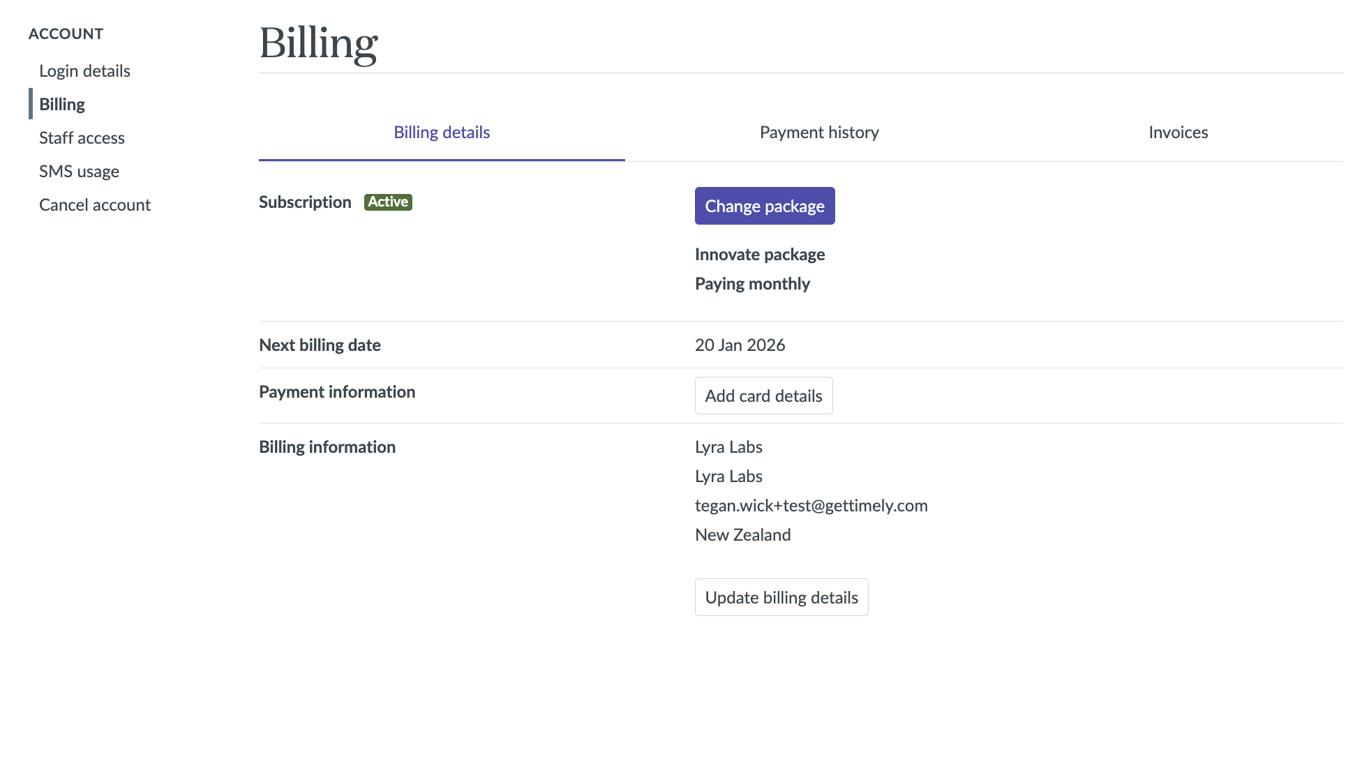 We keep a detailed record of your account’s charges and payment history, which can be accessed in the account at any time. In this guide you'll learn how to view your Timely plan.