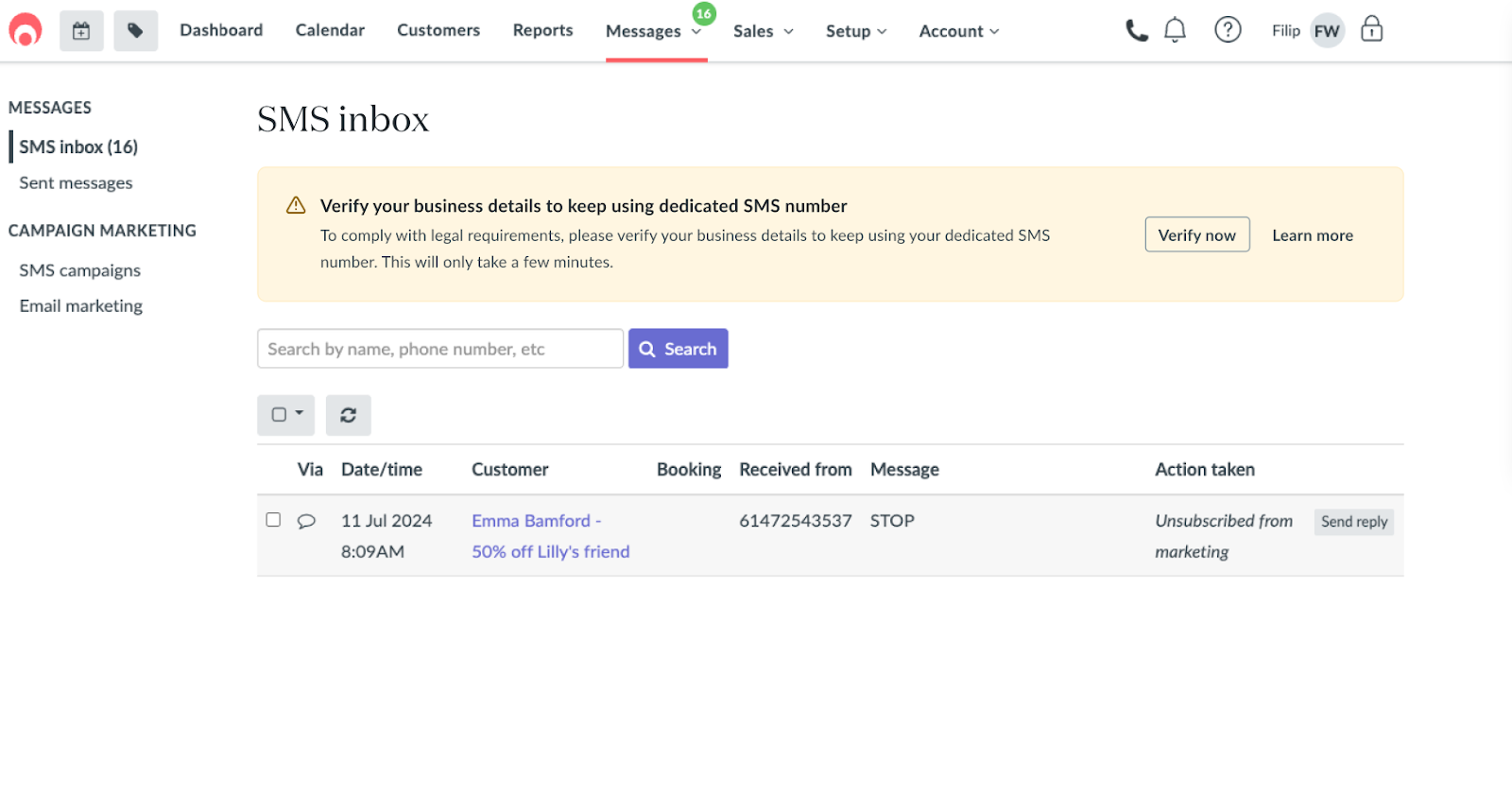 If you don’t verify in time, this will result in your dedicated number being disabled and you won’t be able to use it for client communication. Instead, you'll be assigned a shared pool number, which will impact two-way messaging and client replies.