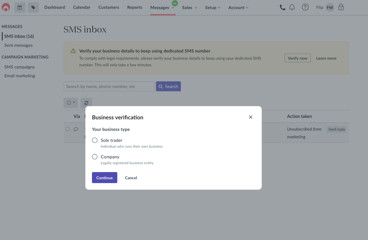 To continue using your dedicated SMS number, you need to verify your business details due to these new compliance requirements.