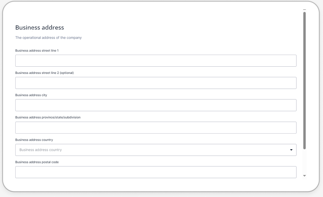 - Excerpt from the commercial register (required only for businesses not using a UK Companies House Registration Number)