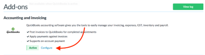 - Head to Setup > Add ons and click Configure next to the QuickBooks integration: